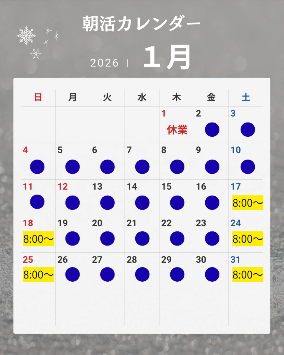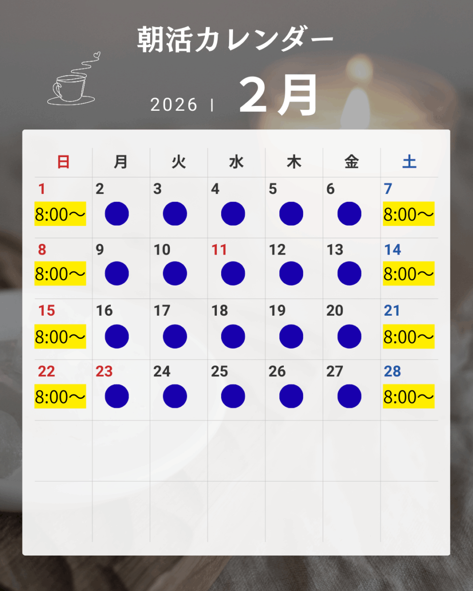 ・空白の日…朝活が未定です。近日中にご案内いたします。通常の11:00~のご予約は可能です。